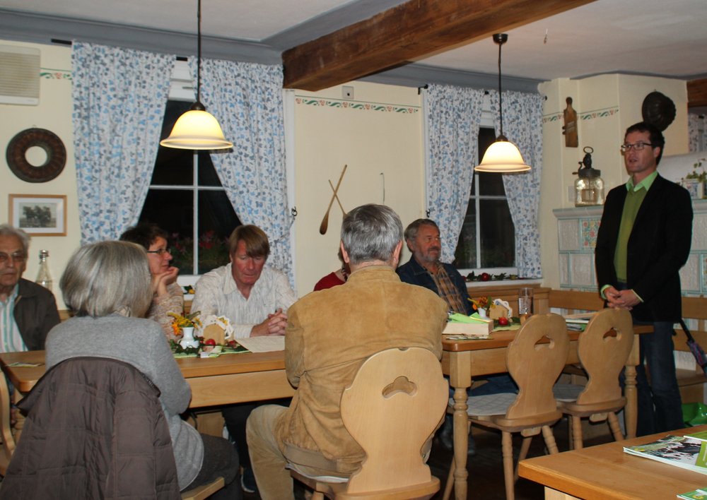Zahlreiche Interessierte, darunter viele Bauern, diskutierten im urgemütlichen Gasthof Ochsen in Geifertshofen über aktuelle Fragen zur Zukunft der Landwirtschaft in der Region Hohenlohe. Wie erhalten wir attraktive Kulturlandschaften und bäuerliche Familienbetriebe? Wie können der Ökolandbau und regionale Wirtschaftskreisläufe gestärkt werden, so wie bei der Kooperation lokaler Bio-MilchbäuerInnen mit der Dorfkäserei in Geifertshofen?