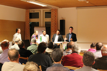 Harald Ebner, Mdb, Martin Schäfer, Demeterbauer und Mitglied des Bündnis Gentechnikfreies Hohenlohe, und Rainer Kubach, Mitglied bei Bioland und bei FIAN, einer Organisation, die sich für das Menschenrecht auf Nahrung einsetzt, erläuterten, was der Gensoja-Anbau in Paraguay und im sonstigen Lateinamerika mit unserem eigenen Lebensstil und unseren Ernährungsgewohnheiten zu tun hat. Die Gen-Soja wird überwiegend als billiges Futtermittel für die Fleischproduktion nach Europa und in die USA exportiert. "Gensoja ist das Schmiermittel einer ökologisch und sozial nicht nachhaltigen Billigfleischproduktion in Europa", so Ebner. Durch bewussteren Konsum und weniger, aber hochwertigeres Fleisch im Speiseplan kann jeder Einzelne diesem System aus Ausbeutung und Vergiftung etwas entgegen setzen, verdeutlichten die drei Experten.