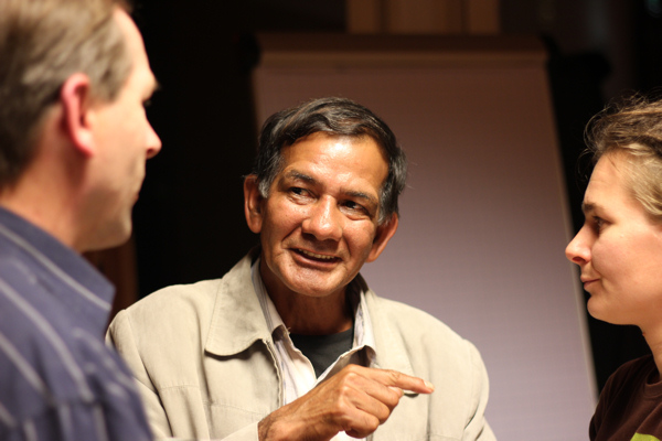Im Anschluss an den Dokumentarfilm zeigten sich die Zuschauer tief beeindruckt von Géronimo Arévalos‘ Berichten aus der Region und nutzten die Gelegenheit für zahlreiche Fragen und Solidaritätsbekundungen. Unterstützt wurde Géronimo Arévalos dabei von Steffi Holz, die als Journalistin und Ethnologin selbst schon oft die Region bereist hat, und die am Freitag in Hohebuch auch übersetzte.