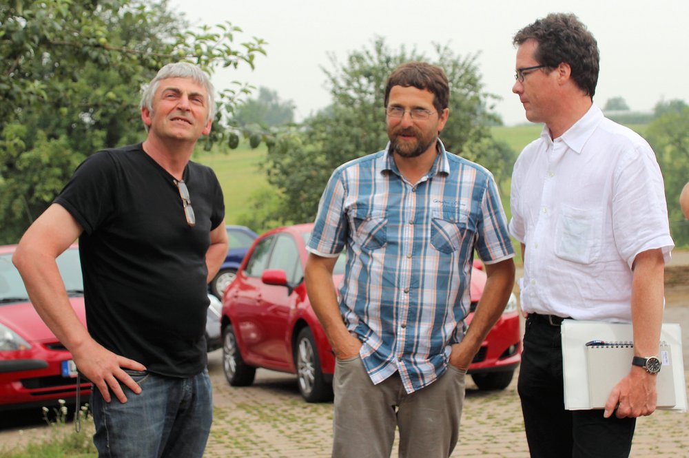 Gute Atmosphäre, spannende Diskussionen: der Austausch über die Ergebnisse der aktuellen Reform der Europäischen Agrarpolitik (GAP) mit Martin Häusling (Mitglied des Europäischen Parlaments) und Harald Ebner (Mitglied des Bundestags) lockte Landwirte selbst aus Rot am See und Obersontheim auf den Hof von AbL-Vorstand Martin Schäfer in Neuenstein.