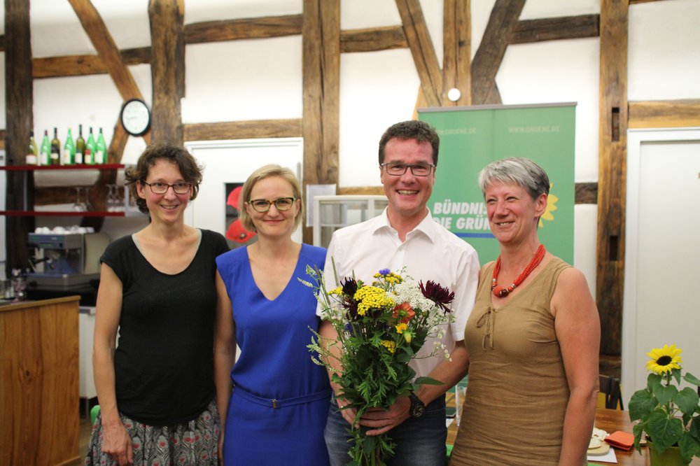 Harald Ebner bedankte sich für das Vertrauen, das ihm mit seiner erneuten Wahl entgegengebracht wurde und versicherte, seine politischen Schwerpunkte wie den Einsatz für eine gentechnikfreie Landwirtschaft ohne Pestizide und gegen TTIP weiter konsequent zu verfolgen. Symbolisch für sein Engagement für die Artenvielfalt auf unseren Feldern bekam er von der Grünen Landtagsabgeordneten Jutta Niemann einen Strauß aus heimischen Garten- und Wiesenblumen überreicht.