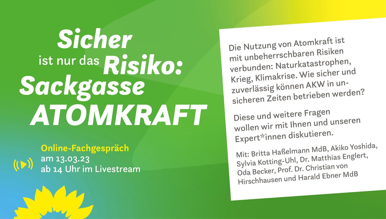Seid live mit dabei. Zur Anmeldung geht es hier: https://www.gruene-bundestag.de/termine/sicher-ist-nur-das-risiko-sackgasse-atomkraft