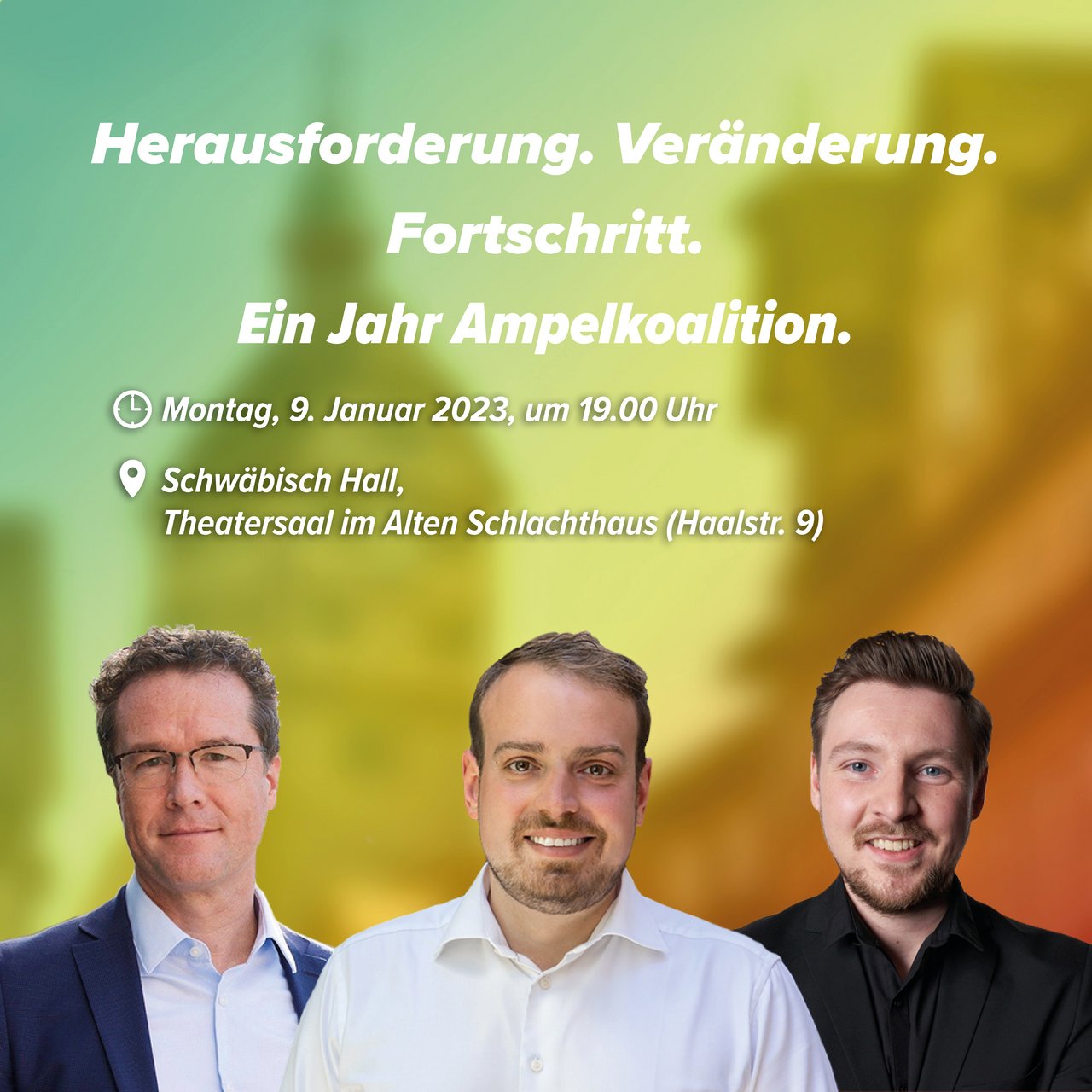 Nach diesem bewegten Jahr ist es Zeit, eine erste Bilanz zu ziehen und einen Ausblick zu skizzieren. Als Bundestagsabgeordnete der Regierungsfraktionen für Schwäbisch Hall – Hohenlohe laden wir deshalb recht herzlich ein zu unserer gemeinsamen Veranstaltung am 9. Januar 2023. Anmeldung bitte vorab unter: harald.ebner.ma03@bundestag.de.