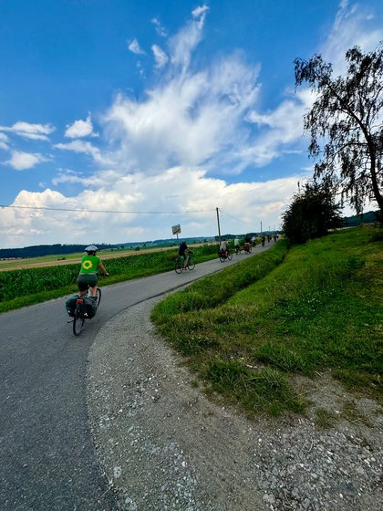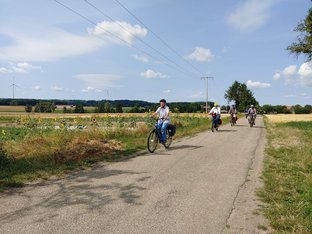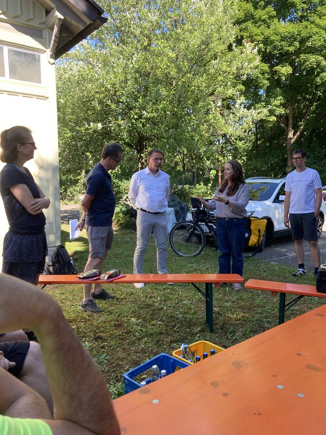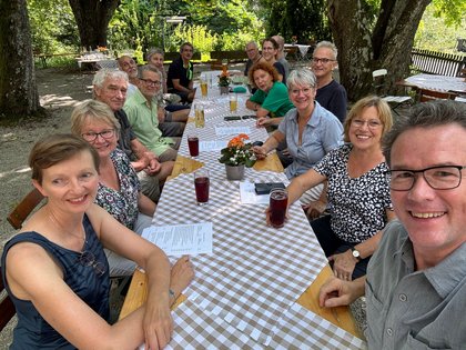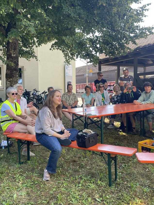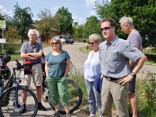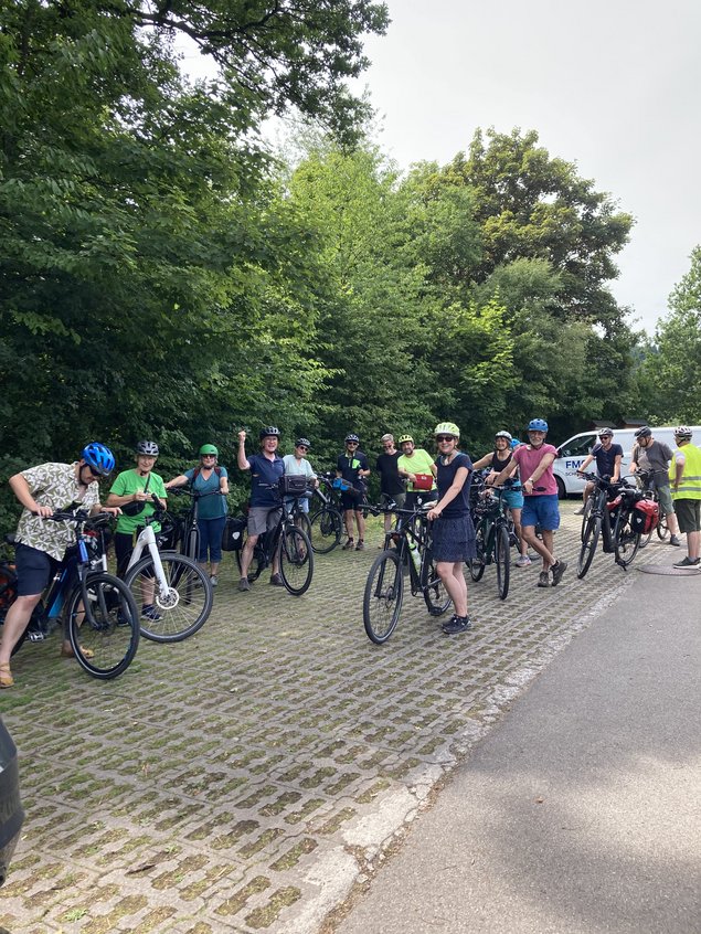 Auch in diesem Jahr war unsere grüne Wahlkreis-Radtour wieder eine gelungene Möglichkeit, viel Bürgerengagement und innovative Projekte kennenzulernen. Gemeinsam mit meinen beiden Landtagskolleginnen Jutta Niemann und Catherine Kern und 16 weiteren Radler*innen erkundeten wir den Osten unseres Wahlkreises nahe der bayrischen Grenze. Vom bürgerschaftlich unterhaltenen Schwimmbad über einen Gedenkort für Mitbürger einer ethnischen Minderheit, die Opfer des Nationalsozialismus wurden, über Klimaanpassung in der Landwirtschaft - die Bandbreite an Informationen und Erlebnissen war groß.
