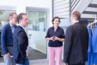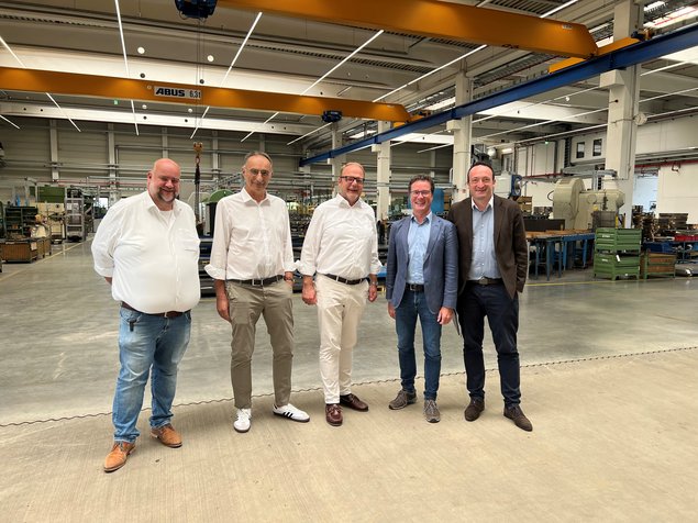 Der Fokus der Gesprächsteilnehmer lag auf Fragen der Nachhaltigkeit. Das Unternehmen hat zum Beispiel in eine Fotovoltaikanlage investiert, die zwei komplette Dachflächen, so auch die der Produktionshalle umfasst und als Energiespeicher dient. So können Spitzenlasten abgefangen werden und es kommt zu einer erheblichen Reduzierung des Energieverbrauchs. Auch die notwendige Reduzierung gesundheits- und umweltschädlicher Chemikalien in der Kunststoffproduktion sowie die zunehmende Bedeutung von Kreislaufnutzung zum Schutz der Umwelt wurde thematisiert.
