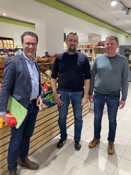 Im Anschluss an das Gespräch besuchten wir noch gemeinsam den Dorfladen Wiesenbach, Teilort der Gemeinde Blaufelden. Dass der laufende Betrieb sehr viel Einsatz erfordert, um den Laden wirtschaftlich zu betreiben und welche geschäftlichen Unwägbarkeiten dies birgt war im Gespräch mit Geschäftsführer Sebastian Glemser und Harald Weidmann von der Dorfladen-Initiative zu erfahren.