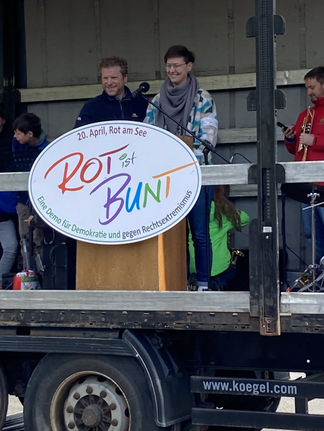 Etwa 400 Menschen folgten der Einladung eines breiten zivilgesellschaftlichen Bündnisses zu Demo für Vielfalt und Tolerenz, gegen Rechtsextremismus, nach Rot am See. Auch in Dörfern ist es wichtig, vor den Gefahren jeglicher Art von Extremismus zu warnen, Menschen wachzurütteln. Die Redebeiträge von Lea Geldner, Dr. Peter Franz, einst Arzt in Gerabronn, Dekanin Friederike Wagner, Axel Rudolph vom Kirchberger Bündnis sowie Norman Krauß von der Initiative "Männer von Brettheim" setzten genau hier an, so auch die Texte der Musikband "Okapi".