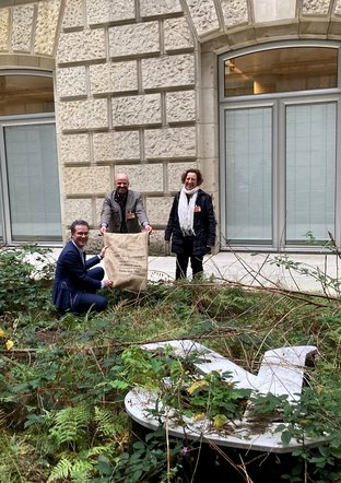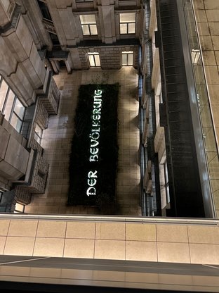 Kürzlich hatte ich in meinem Wahlkreis bei einer ganzen Reihe unterschiedlicher Betriebe Erde eingesammelt, um sie ins Reichstagskunstwerk "Der Bevölkerung" einzubringen. Im Rahmen einer politischen Informationsfahrt haben mich nun zwei Landwirt*innen in Berlin besucht, die beim Zusammentragen dieser regionalen Erde beteiligt waren. Gemeinsam mit ihnen habe ich den vollen Sack am Kunstwerk von Hans Haake im Lichthof des Reichstagsgebäudes ausgebracht. In das Kunst-am-Bau-Projekt können alle Abgeordneten des Bundestages ihre regionale Erde einbringen. So trägt nun auch eine gute Mischung Hohenloher Boden zur gesamtdeutschen Vielfalt bei. Das mag auch symbolisch dafür stehen, bodenständige, besonnene und geerdete Entscheidungen zu treffen und auf einer solchen Basis auch gesellschaftliche Diskussionen zu führen.