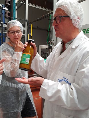 Der engagierte Obstbauer erläuterte uns, welchen Beitrag kleinstrukturierte Betriebe zur regionalen Versorgung mit guten Lebensmitteln leisten, aber auch zum Erhalt von Kulturlandschaft und Artenvielfalt. Ihn und viele seiner Kollegen treibt die Frage um, wie sie den Anforderungen des Artenschutzes gerecht werden und dabei auskömmlich wirtschaften können. Zur Sprache kamen Themen, wie die Züchtung neuer Sorten, die gegen Schorf oder andere Schaderreger widerstandsfähig sind, die Ausbringung von Pestiziden und Maßnahmen zum Erhalt der Bodenfruchtbarkeit.