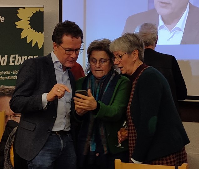 Gemeinsam verfolgten Wahlkampfhelfer*innen, Mitglieder und Freund*innen der Kreisverbände Schwäbisch Hall und Hohenlohe im Debi´s TSG Vereinsheim in Schwäbisch Hall am Wahlabend dessen Verlauf. Auch, wenn das Wahlergebnis unter unseren Erwartungen lag, so war es doch das zweitbeste bei einer Bundestagswahl in der Geschichte der Grünen. Im Vergleich zu den anderen Ampelparteien konnten wir unser Ergebnis am besten halten. Doch ist selbstkritische Aufarbeitung angesagt. Mit Sorge blicken wir auf das erneute Erstarken der AFD.