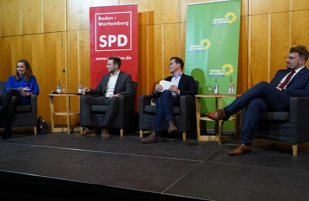Zur Veranstaltung „Halbzeit – Bilanz und Ausblick“ hatte ich gemeinsam mit den Bundestagsabgeordneten Kevin Leiser (SPD) und Valentin Abel (FDP) am Dienstag, den 6. Februar, in die KULTURa nach Öhringen eingeladen. Die Veranstaltung wurde von Monika Pfau, Pressesprecherin der Stadt Öhringen, moderiert.