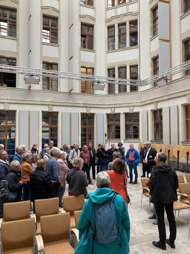 Erneut reiste eine Besuchergruppe aus meinem Wahlkreis im Rahmen einer politischen Informationsfahrt für drei Tage nach Berlin. Gleich nach der Ankunft ging es ins Futurium, wo sich die Besucher*innen damit beschäftigen konnten, wie wir in Zukunft einmal wohnen, arbeiten und zusammenleben werden. In der Gedenkstätte für NS-Zwangsarbeiter*innen in Berlin-Schöneweide erfuhren die Teilnehmer*innen am nächsten Tag Details über den menschenunwürdigen Umgang mit den Gefangenen und dass sehr viele deutsche Unternehmen von der Zwangsarbeit, für die die Opfer erst sehr spät und viel zu gering entschädigt wurden, profitierten. Bedauerlicherweise knapp verpasst: Etwa eine halbe Stunde vor dem Besuch der Gruppe im Deutschen Bundestag mit Plenardebatte hielt ich meine Rede gegen die Anträge der AFD zur Wiederbelebung der Energieerzeugung durch Atomkraft. Jedoch hatten wir anschließend noch einen guten, einstündigen Austausch miteinander im Reichstagsgebäude. Naturschutz und Klimaanpassung sowie die Endlagersuche für den radioaktiven Müll der Atomkraftwerke waren sehr wichtige Themen beim Besuch des Ministeriums für Umwelt, Naturschutz, nukleare Sicherheit und Verbraucherschutz. Danach ging es nach Hohenschönhausen auf das Gelände der ehemaligen Staatssicherheit der DDR, wo es eine Führung durch Zeitzeugen gab.