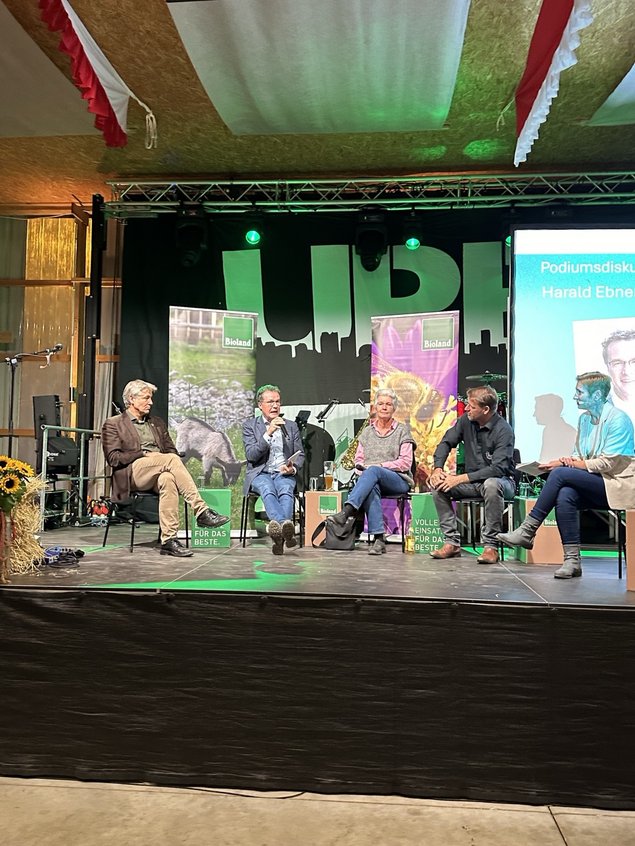Hofinhaberin Doris Braun hielt den Ofen derweil am Laufen, bis es losgehen konnte nach dem Gespräch - es gab leckeren Blooz. Daneben konnten regionales Demeter-Eis und Holundersekt probiert werden. Am Stand vom Nabu und von Rieger- Hofmann Wildblumensamen gab es zahlreiche Informationen. Beim Obstsortenquiz konnte man tolle regionale Obstsorten kennenlernen.