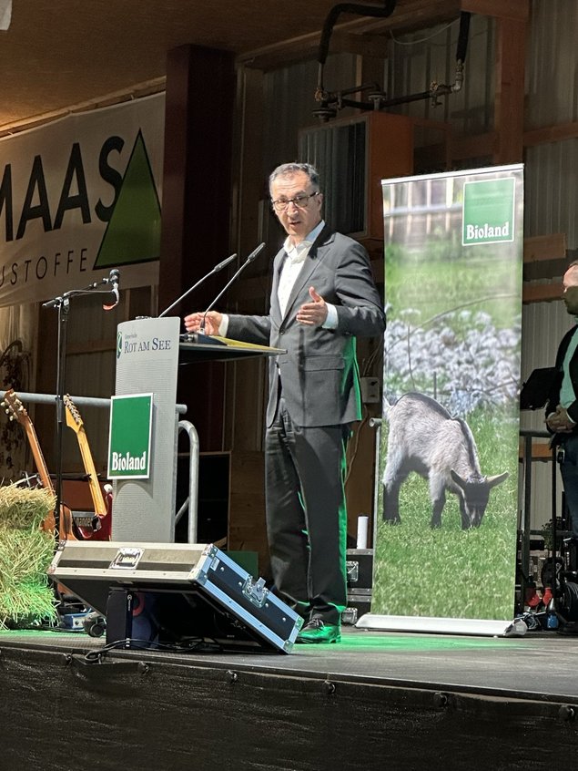 Vor rund 1700 Gästen hielt Cem Özdemir am Vorabend der traditionellen und überregional bekannten Muswiese in Rot am See eine flammende Rede für eine Landwirtschaft mit guter Tierhaltung, Naturschutz, faire Preise und für die finanzielle Unterstützung des Umbaus der landwirtschaftlichen Tierhaltung, für ein staatliches, verbindliches Tierhaltungskennzeichen. Verbraucher*innen verlangten mehr Klimaschutz, eine tiergerechte Haltung, was jeweils Millionenbeträge koste. Ohne Hilfe können dies die Landwirte nicht bewältigen. „Wir müssen sie finanziell begleiten“, so Özdemir.